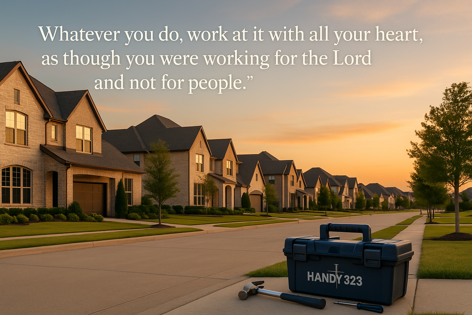 I’m a proud Prosper neighbor, devoted husband, and dad to two energetic young boys, truly grateful to call Windsong Ranch home. Through Handy323, I bring the same genuine care, attention, and integrity that I give my own household into helping other families keep their homes safe, comfortable, and running smoothly. From the smallest fixes to the everyday to-dos, my goal is to serve with honest hands, dependable workmanship, and a friendly, neighborly spirit.